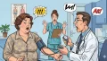 自分の腹部CT画像を見て、内臓脂肪がたまりまくっている様子に驚いている小太りの中年女性